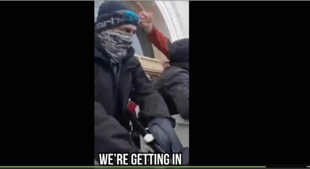 And we know BeCivilGuy knows this, because at 0:39, BeCivilGuy points to the other side of the Capitol and reassures the window-breaker’s associate that “We’re getting in. We’re getting in.” BeCivilGuy either wanted, or was fine with, Trump supporters going inside the Capitol. He just wanted people to do so peacefully.