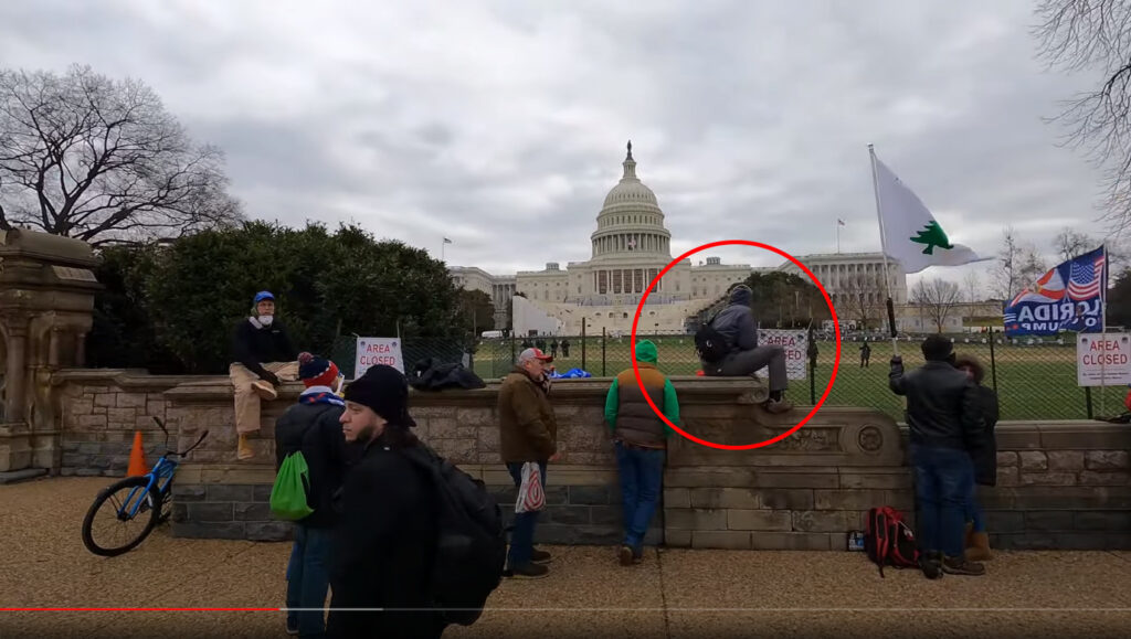 At this moment in time below, immediately before the breach, BeCivilGuy is the deepest “trespasser” of any of the tens of thousands of Trump supporters in DC.