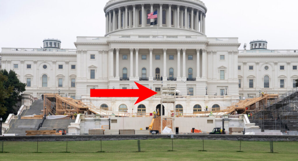 NWScaffoldCommander (we’ll call him just “ScaffoldCommander” for short) gets his name from being the ostensible “commander” of the prominent “media tower” that overlooked the Capitol’s back terrace on January 6. You’ve probably seen this tower in pictures—it’s the tall temporary structure built in November 2020 so that media crews could properly film the January 2021 inauguration ceremony. Here’s what it looks like without people around.