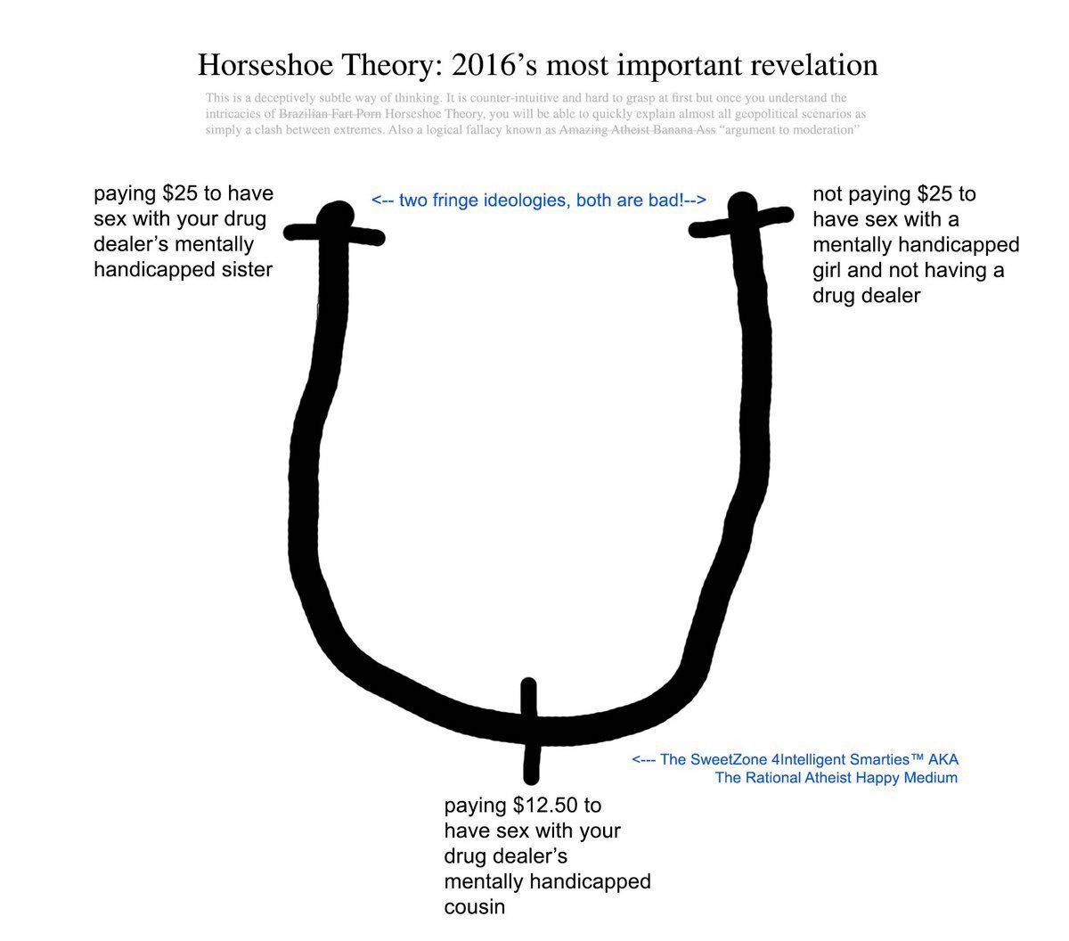 "Orange man bad" at the end of the horseshoe.