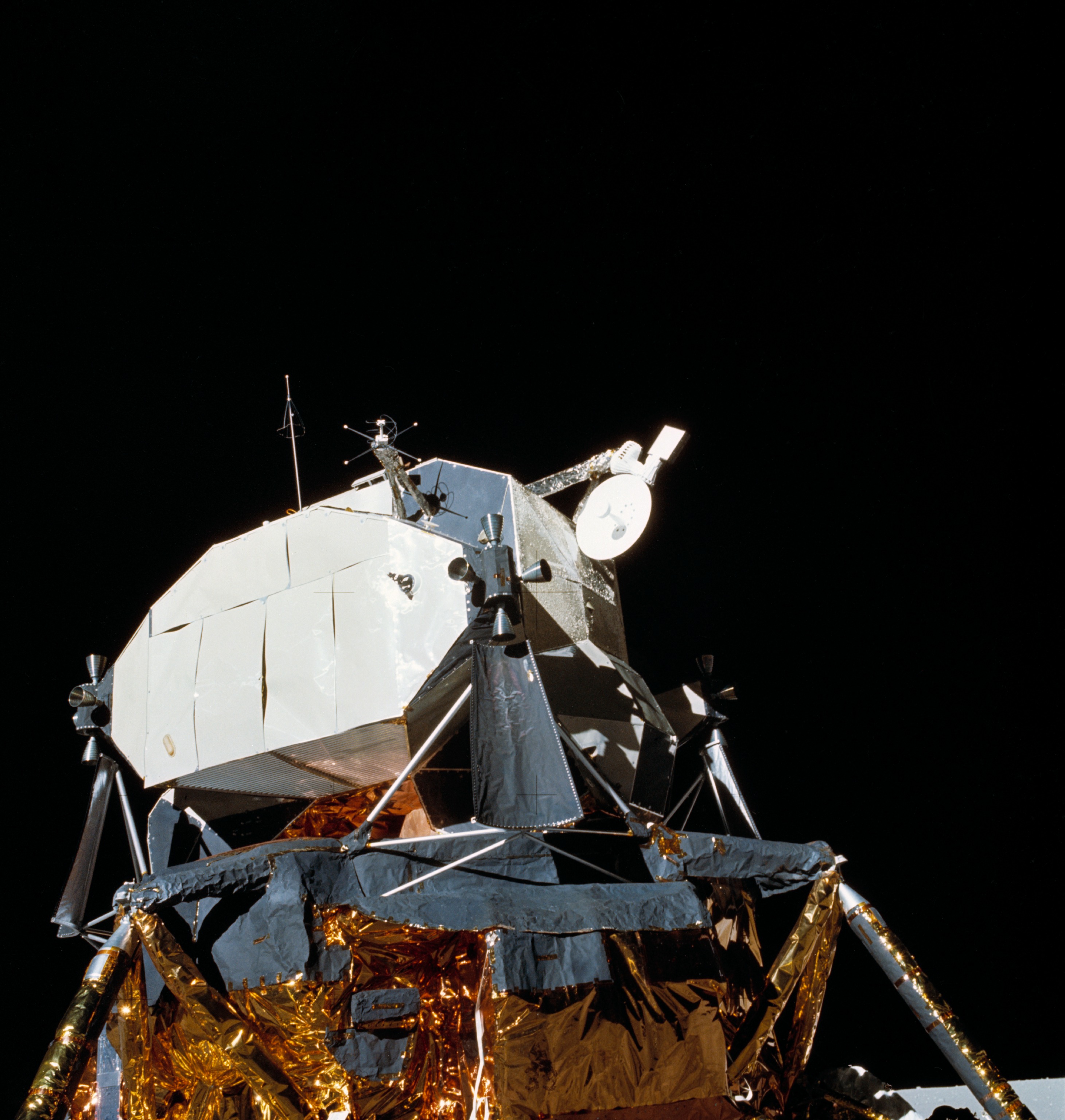 Hate to say it again, but thats just what they covered it with to keep lunar dust out, those panels look like shit though. I think that everytime I look at this thing. But I mean flying through space is prolly not the easiest thing on some loose aluminum panels.