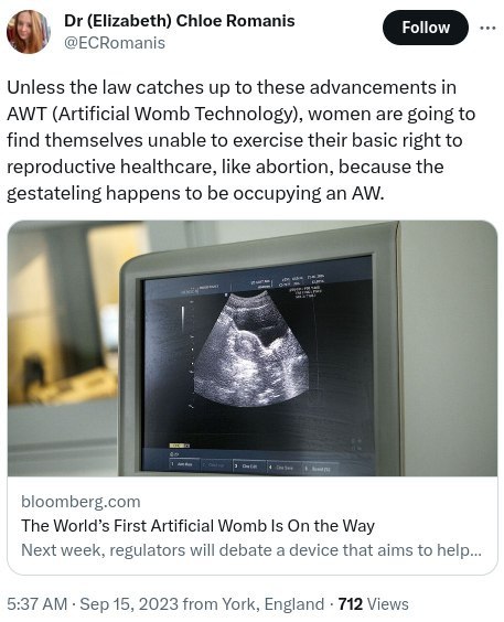 Tradcucks on suicide watch. Artificial wombs will finally end the plague of natalism.