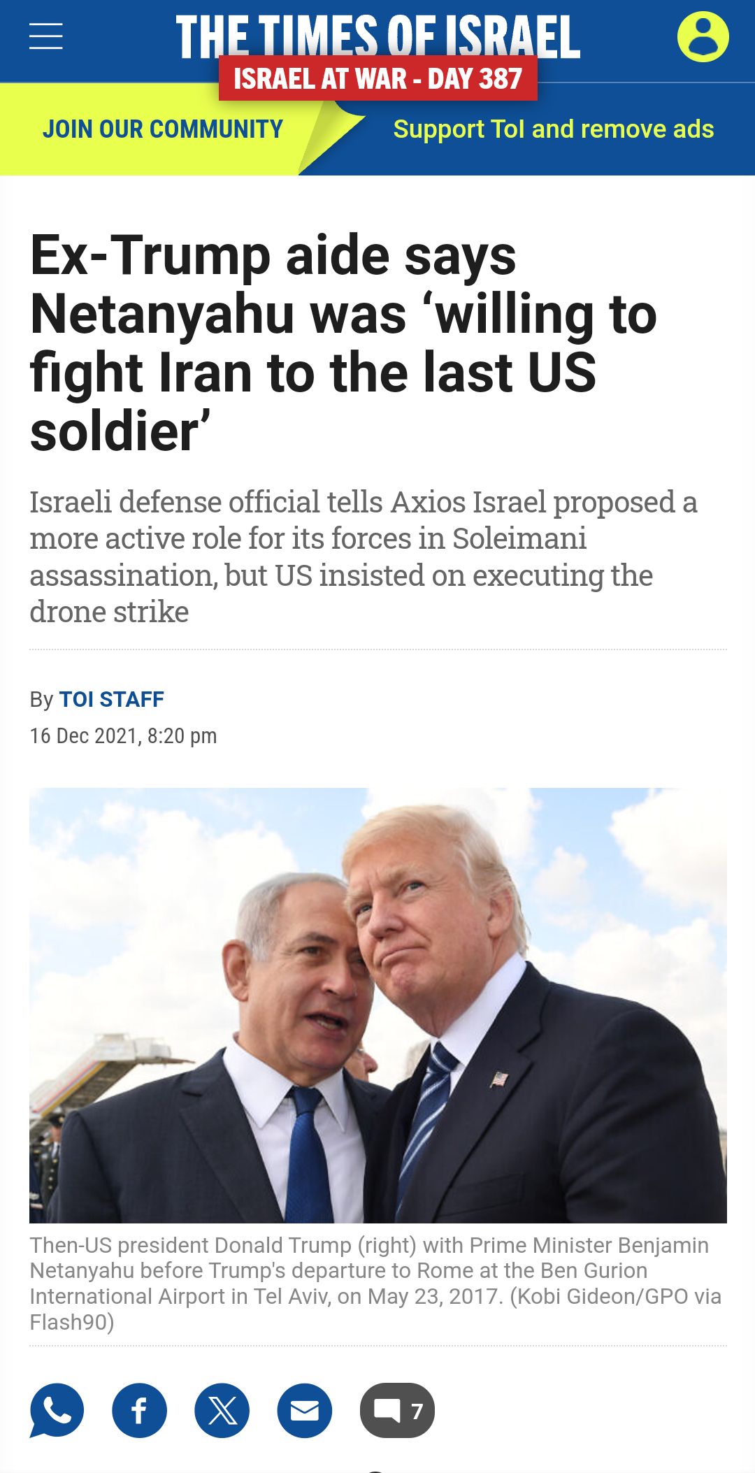 Netanyahu willing to fight iran "to the last american" (times of israel):