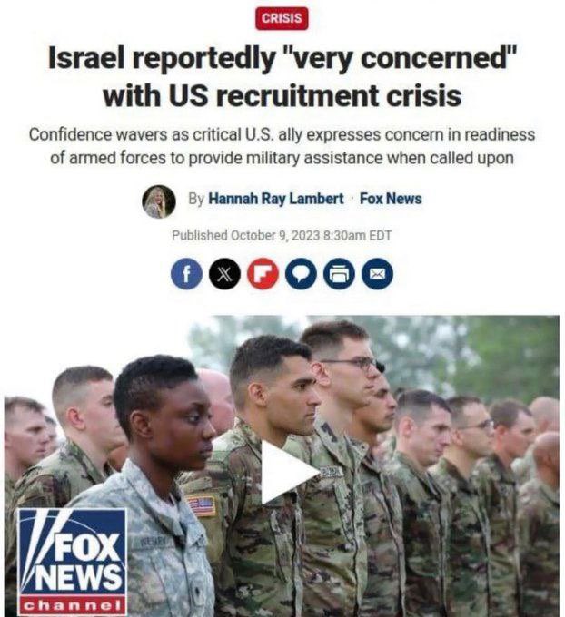 Israel reportedly "very concerned" with US Army recruitment crisis (fox news):