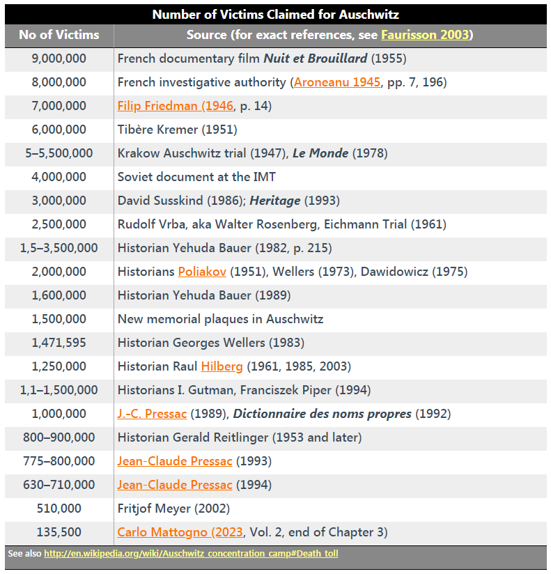 Auschwitz death number revisions so far: