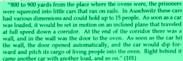 I'm still trying to picture how the holocoaster was supposed to work. After it dumps the bodies, does it move to the side and reset? How are they getting the bodies in there so fast and what was the point of the door opening and closing so often? Can someone explain so I can use my masturbate to death machine next to my jew skin lamp that I clean with my jew soap?