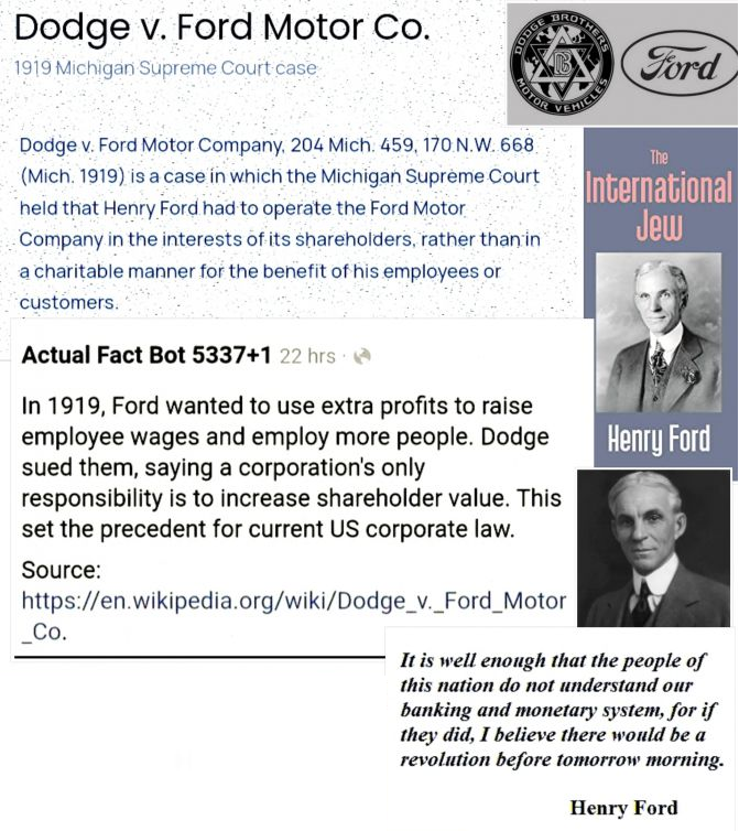 Dodge vs Ford (Dodge Brothers used a star of remphan as their logo; Ford is now owned by their first jewish ceo who is on record gloating about this fact contrasted against Ford's thoughts on the group):