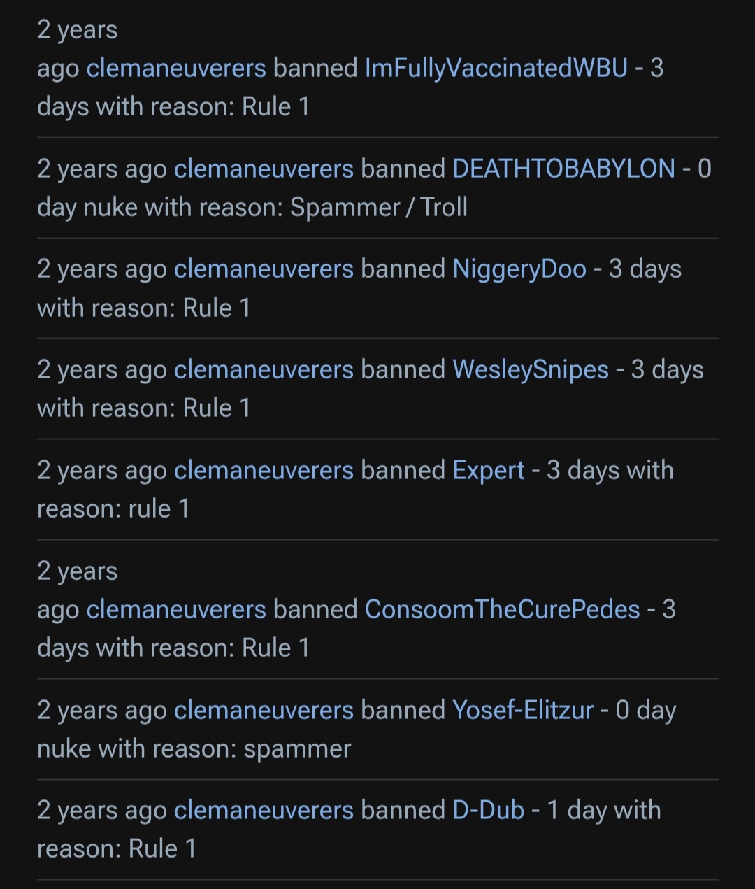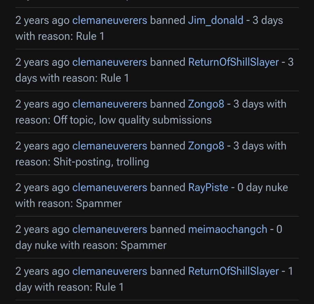 Any luck finding evidence to support your claim that “namecalling” resulted in blanket removals before you became the mod?