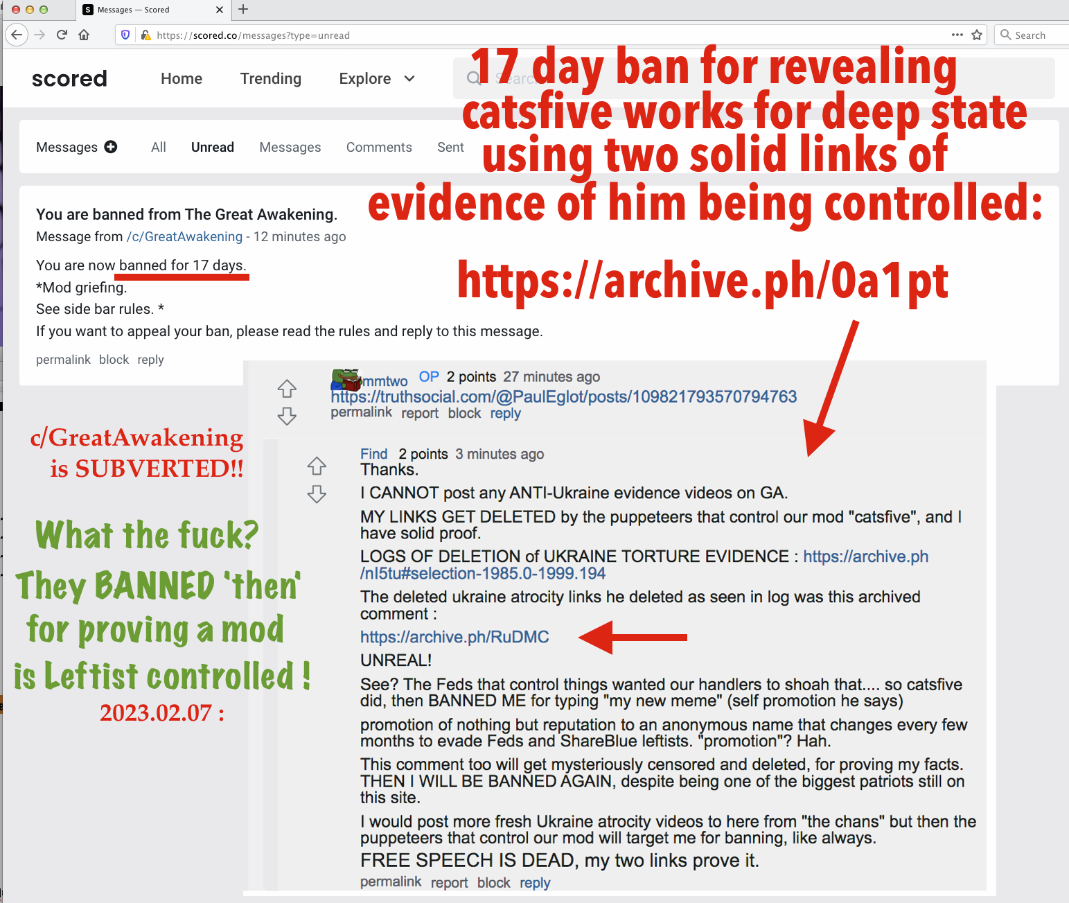 🚨🚨📢SUBVERSION ALERT !!! WHOOP WHOOP🚨🚨📢 I CANNOT post any ANTI-Ukraine evidence videos on c/GreatAwakening ! A Lefty mod "catsfive" deletes anti-Ukraine atrocity links and bans noticers! 🚨🚨: