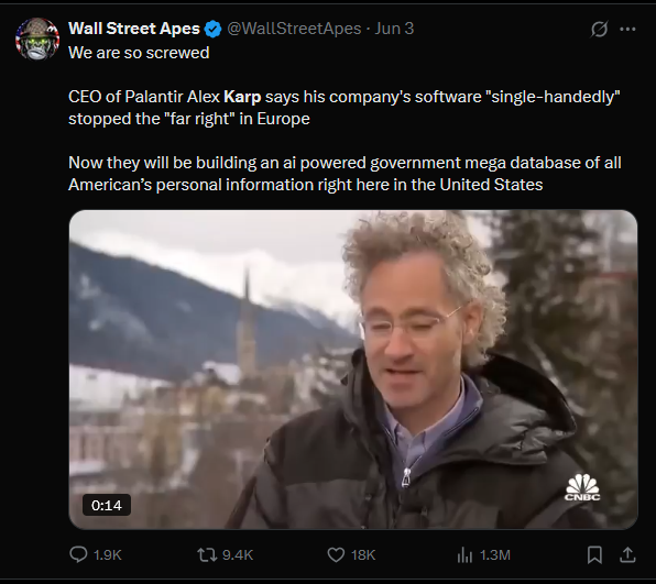 palantir used to "singlehandedly stop far right in europe"; also has automated killing functions for killing Palestinians: