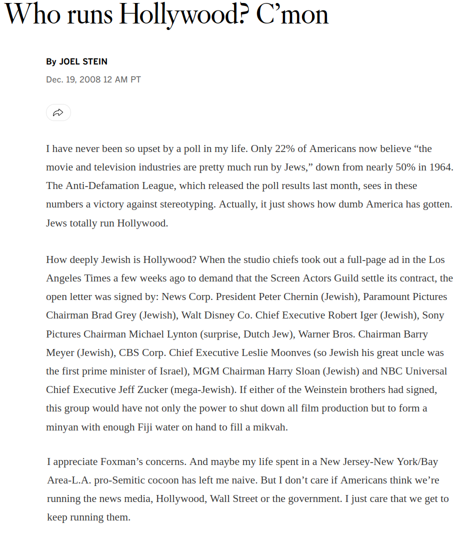 Here is foxman kvetching about how we speak of jews in the media in the absolute classic, "who runs hollywood, c'mon" (la times, 2008):