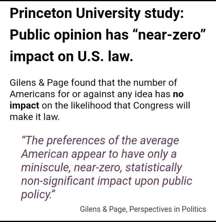 Public sentiment has 0% correlation with public policy (Princeton study):